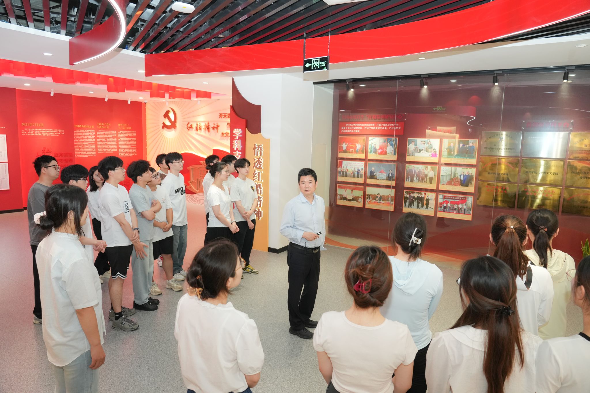 在红船精神提出20年之际,6月18日,校党委书记沈希走进学校红船精神育人成果展示馆,为马克思主义理论等专业的研究生讲授了一堂别开生面的思政课。