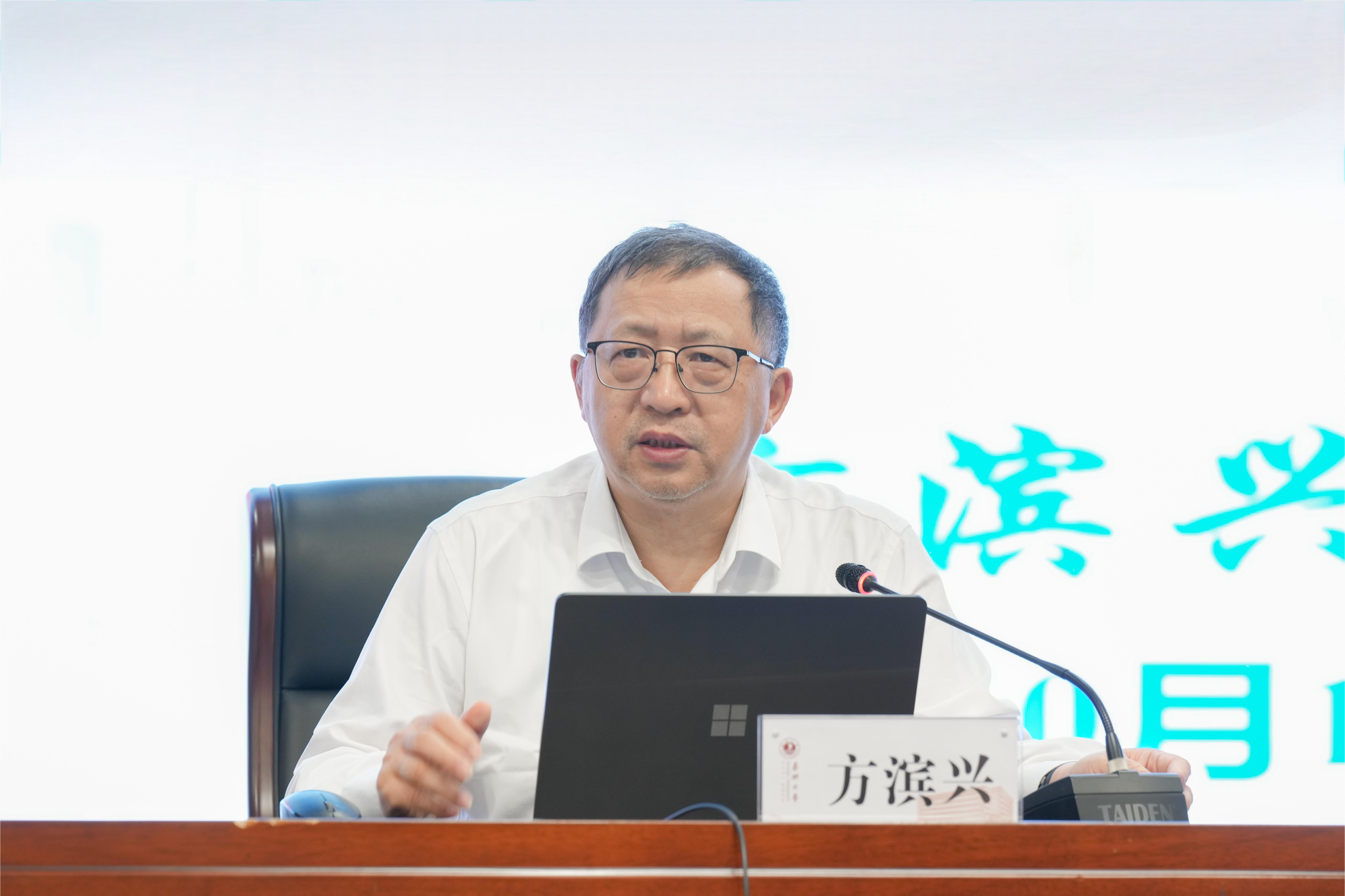方滨兴院士团队成员,学校相关职能部门、学院负责人及师生代表等近400人到场聆听。