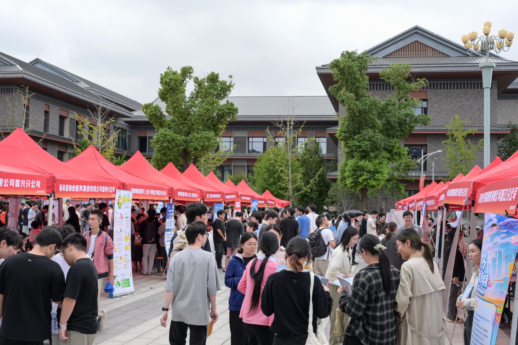 “金秋有约,‘职’引未来”——嘉兴大学2026届毕业生秋季招聘会暨校友企业专场招聘会在梁林校区举行。