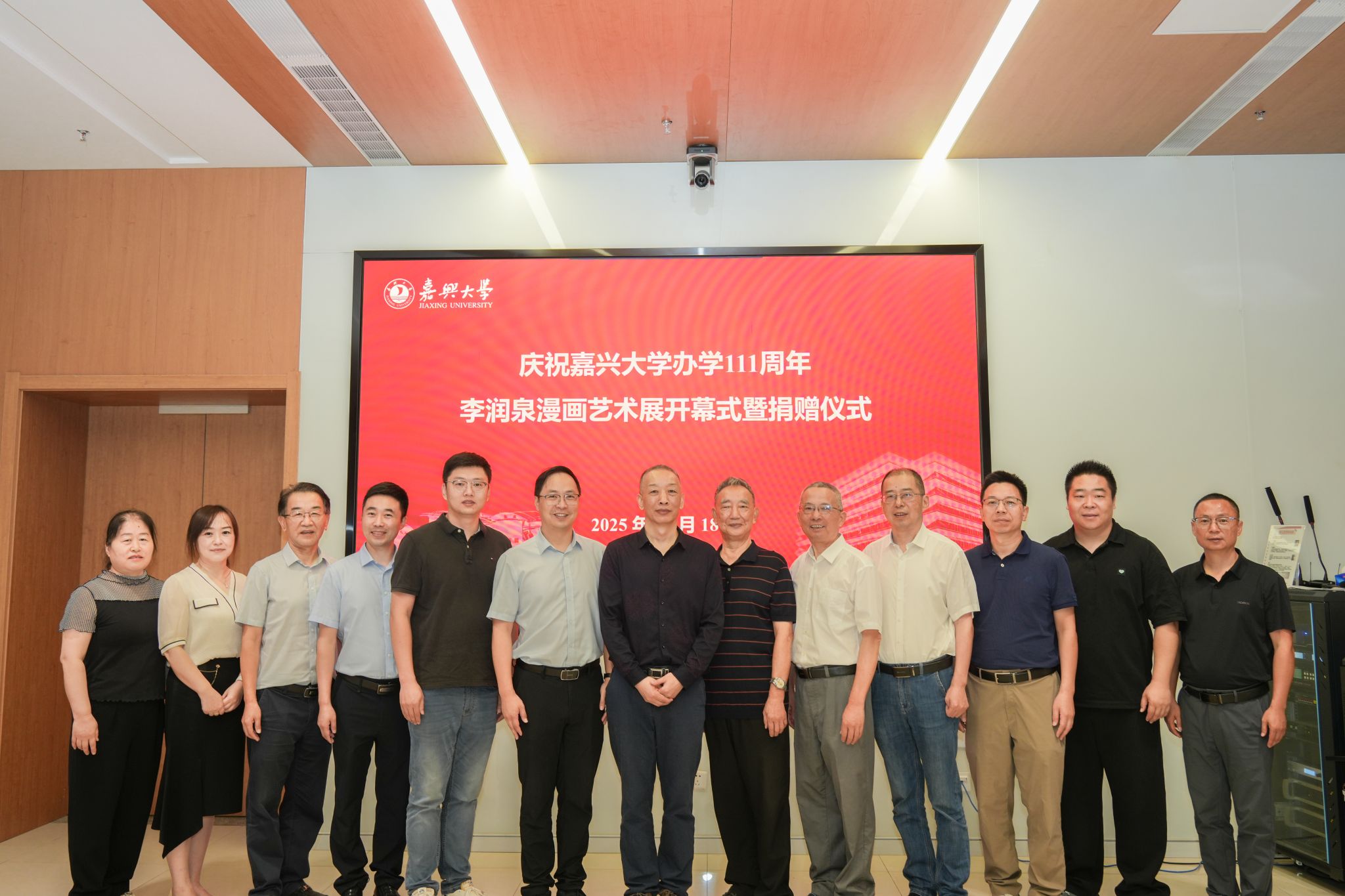 “笔绘春秋 情系嘉园——庆祝嘉兴大学办学111周年李润泉漫画艺术展”在图书馆开幕。王立玮代表学校向校友李润泉表示祝贺。他表示,李润泉校友在漫画艺术领域执着追求,体现了一位文艺工作者的时代担当;他持续反哺母校教育事业,多次向母校捐赠作品并受聘担任客座教授,深情厚谊令人动容;他的艺术之路,正是对母校校训与育人理念的生动诠释,也是全体在校学子砥砺前行的榜样。