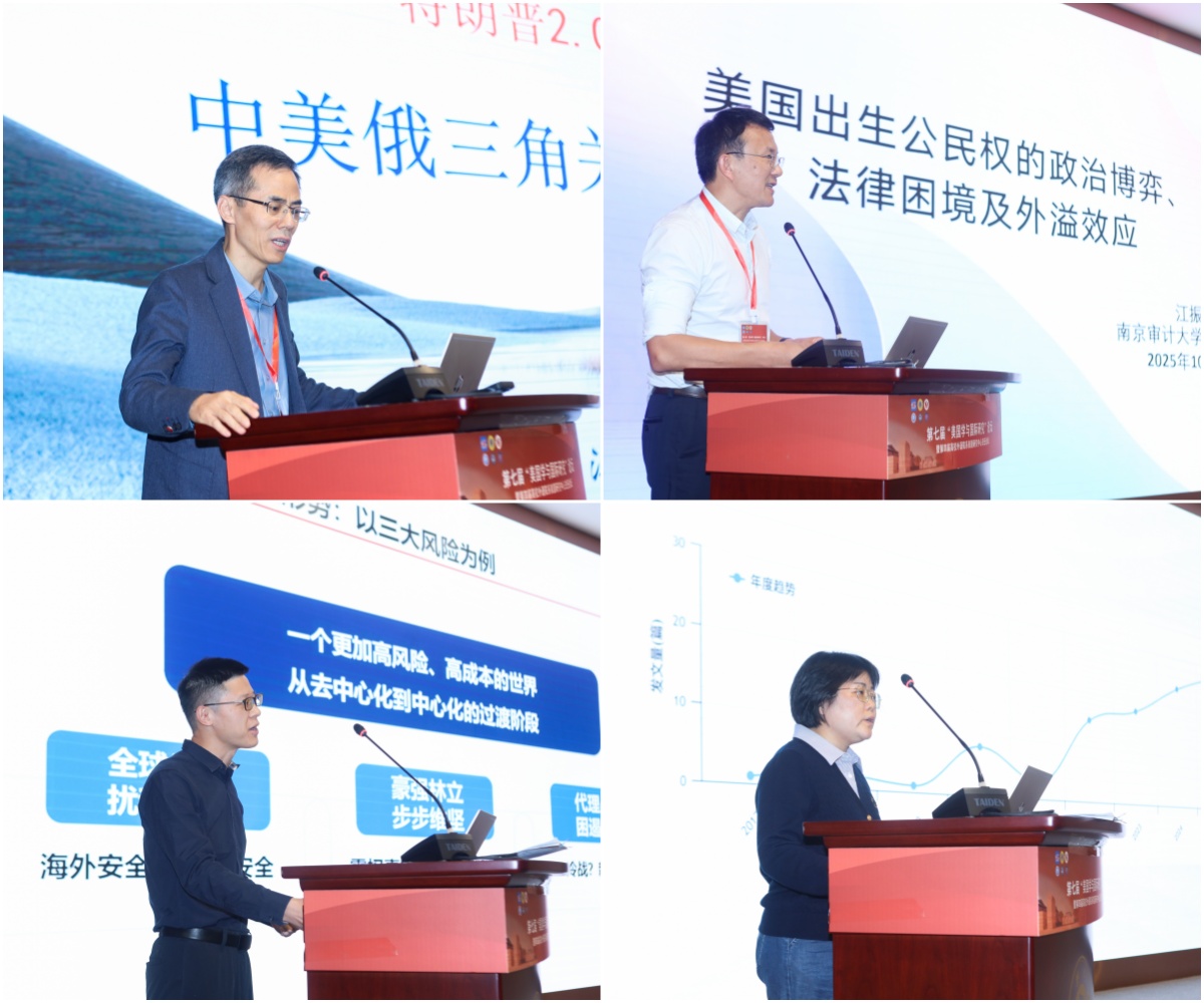 围绕“区域国别学视域下的美国研究”等主题,论坛设置12场主旨报告,邀请中国社会科学院美国研究所副所长、研究员袁征,中华人民共和国驻美国大使馆原国防武官、退役少将张力,上海财经大学外国语学院特聘教授李超民,上海外国语大学美国研究中心主任、教授林玲,华东师范大学外语学院美国研究中心主任、教授金衡山,国防科技大学外国语学院教授王萍,浙江外国语学院美国研究中心主任、教授王冲,嘉兴大学外国语学院教授肖欢,黑龙江大学外文学院(区域国别学院)执行院长、教授吴承义,南京审计大学外国语学院院长、教授江振春,中国社会科学院美国研究所社会文化室负责人、副研究员张佳俊,国防科技大学外国语学院副教授李静作主旨报告。