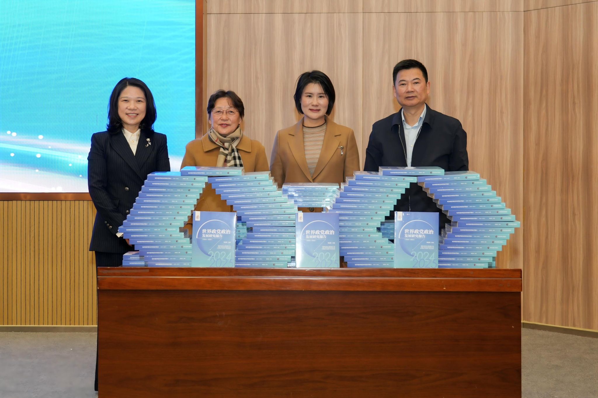 新书发布会上,赵静、沈希、陈立力和周淑真共同为我校政党政治最新研究成果《世界政党政治发展研究报告(2024-2025)》揭幕。该书由当代世界出版社出版,是浙江(嘉兴)中外政党研究中心推出的第四部《世界政党政治发展研究报告》。