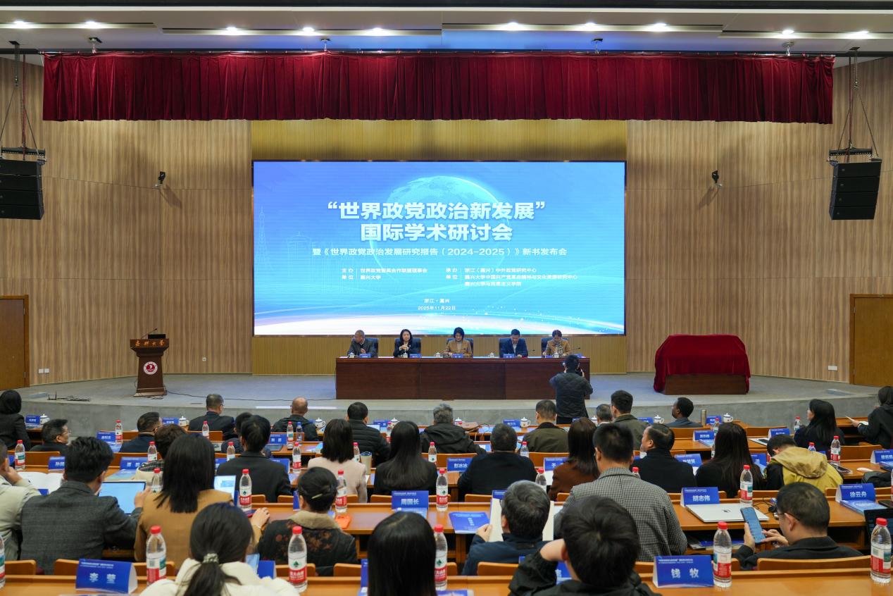11月22日,由世界政党智库合作联盟理事会、我校主办,浙江(嘉兴)中外政党研究中心、我校中国共产党革命精神与文化资源研究中心、我校马克思主义学院承办的“世界政党政治新发展”国际学术会议暨《世界政党政治发展研究报告(2024-2025)》新书发布会在我校举行。中共中央对外联络部研究室副主任赵静,我校党委书记沈希,校党委副书记、马克思主义学院党委第一书记陈立力,浙江(嘉兴)中外政党研究中心主任、首席专家周淑真出席会议。校党委原副书记、马克思主义学院院长吕延勤主持开幕式。