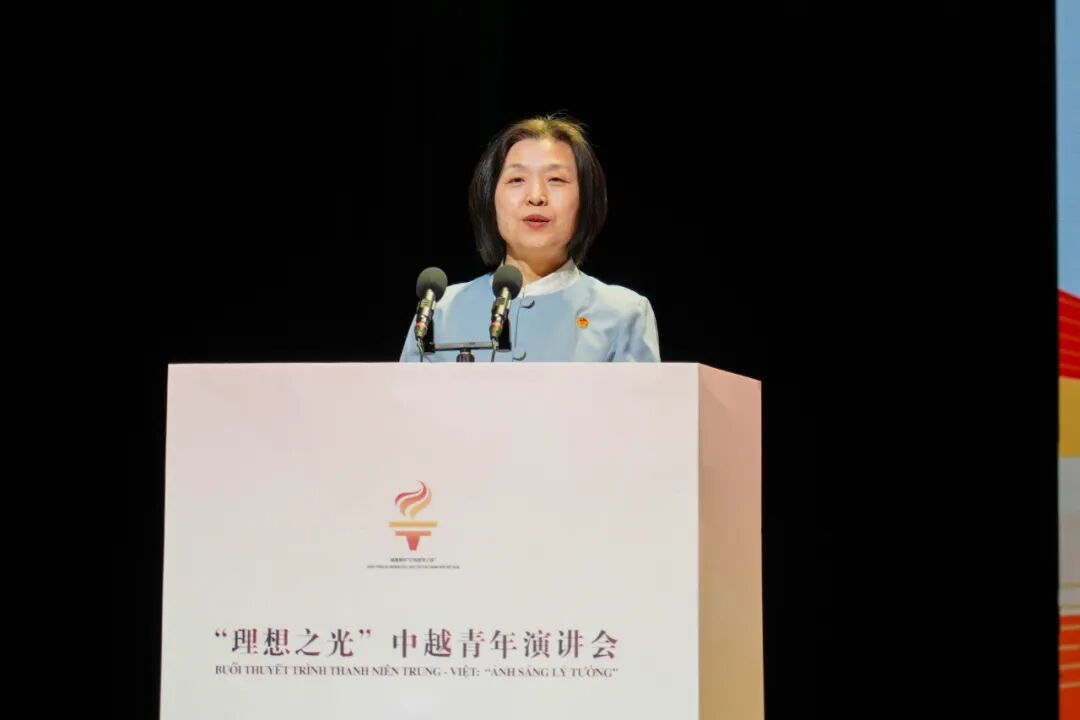 董霞在致辞中表示,中国和越南是山水相连的社会主义友好邻邦,是好邻居、好朋友、好同志、好伙伴。共同的理想信念是中越友好的红色基因,一代代追求理想之光的青年是社会主义事业的未来希望。希望中越青年赓续红色基因,做中越友谊的传承者;加强互学互鉴,做中越社会主义事业的推动者;深化团结合作,做中越命运共同体的建设者,把两国领导人的共同期待转化为两国青年的共同行动。