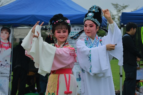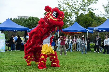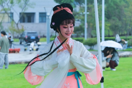 舞台表演吸引了大量同学围观。在上午的表演中,龙狮社的舞狮表演率先登场,灵动的狮身跳跃与鼓点节奏瞬间点燃现场气氛。“戏中缘”越剧社带来经典剧目《花园会》,婉转唱腔尽显传统文化魅力,表演结束后,“逛三园”“反向指令”等热场游戏吸引了师生同台互动。下午的表演亦是精彩纷呈,SDK街舞俱乐部的活力串烧、G-time吉他社《你不知道的事》的温柔弹唱接连上演;汉韵汉文化社与“无限空间”动漫社的coser展演吸引全场目光;小百花越剧团的老师们带来的《槜李传奇·苎萝定情》特色越剧表演将嘉兴地方文化与校庆主题深度结合,展现了一次生动的文化传承。