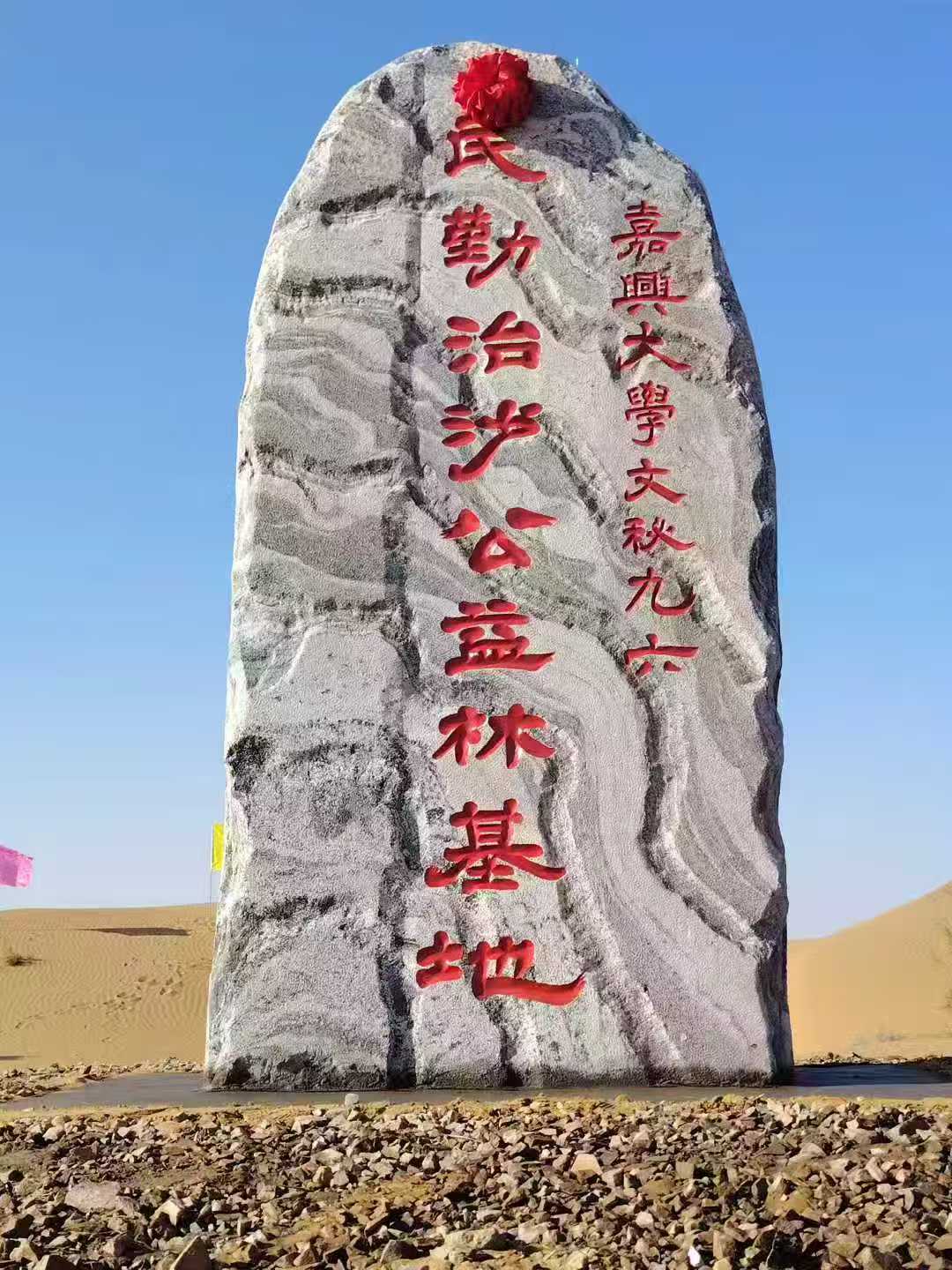 “嘉大文秘有九六,绿化祖国意相投。捐款廿万建基地,造林百亩锁沙丘。片片草格彰担当,丛丛梭树筑绿洲。师生同心护山河,春风拂绿映远眸。”文秘96班班主任杨硕林老师满怀深情地写下这首诗记录班集体的公益行动。他说:“生命短暂,绿树常青。我们所做事,是以有限之年华,孕育不朽之生机。我们的一份份心意,将化作民勤的一株株树木,长久守望那片土地。我们所种下的不仅是一抹绿意,更是一份跨越时间的生命印记。数年、数十年后,我们、我们的子孙都会远赴民勤,欣喜地看望那里的绿树成荫。”