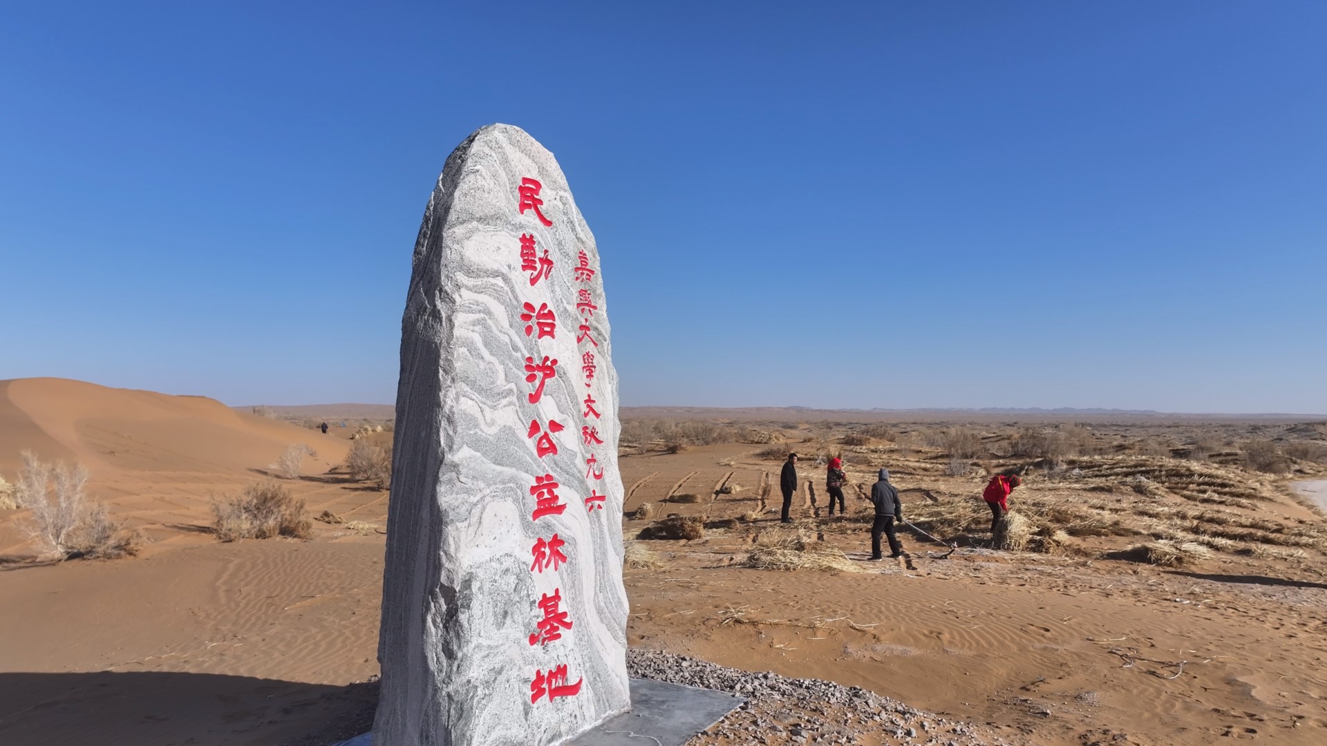 甘肃省民勤县位于河西走廊东北部,被巴丹吉林沙漠和腾格里沙漠三面包围,为有效遏制沙漠扩张,保护西北生态安全,2024年,当地政府发起“请到民勤种棵树”倡议,2025年又将个人种树活动提升至团体种树活动。我校文秘96班校友积极响应,在班主任杨硕林老师和班级同学焦兴慧、欧阳立华、朱云莉等积极组织下,以班集体名义参加活动。文秘96班师生共出资18万元,在民勤县的腾格里沙漠和巴丹吉林沙漠交汇处捐建了100亩治沙公益林基地。欧阳立华捐款最多,金额逾半。